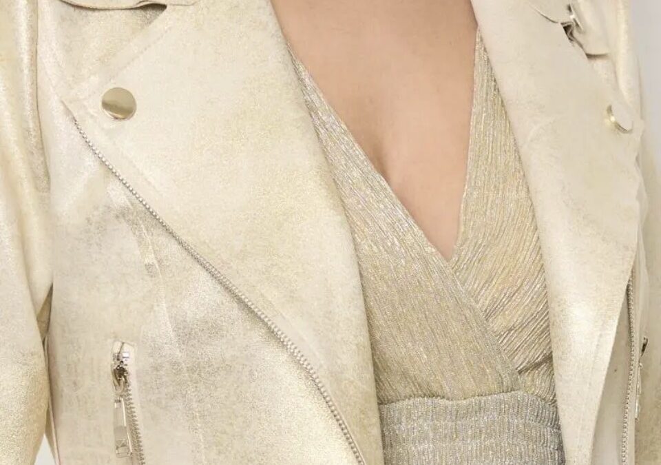Maak een statement met dit trendy biker jasje, vervaardigd uit comfortabele stretchstof in een unieke verwassen gouden kleur. Dit jasje is een perfecte mix van edgy en stijlvol, en is ontworpen voor de modebewuste vrouw die op zoek is naar iets bijzonders.