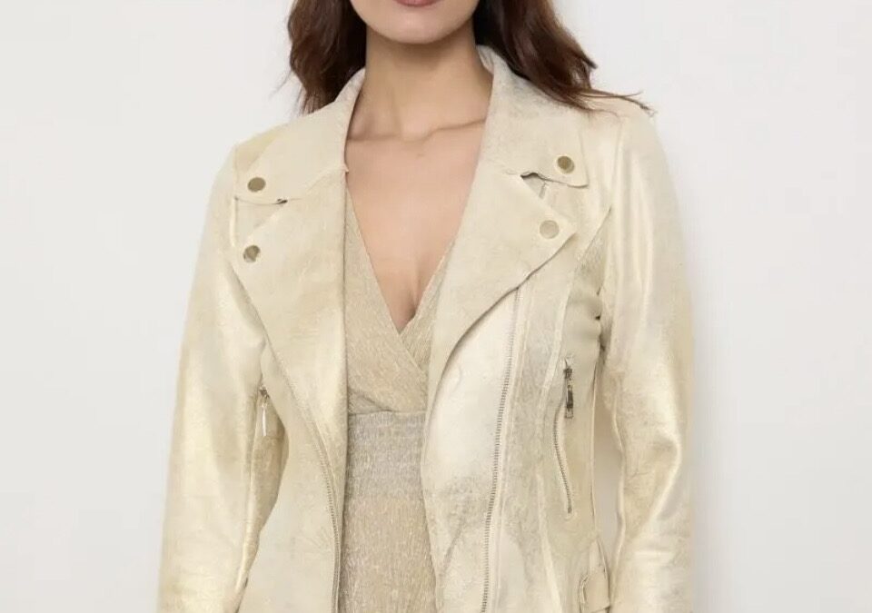 Maak een statement met dit trendy biker jasje, vervaardigd uit comfortabele stretchstof in een unieke verwassen gouden kleur. Dit jasje is een perfecte mix van edgy en stijlvol, en is ontworpen voor de modebewuste vrouw die op zoek is naar iets bijzonders.