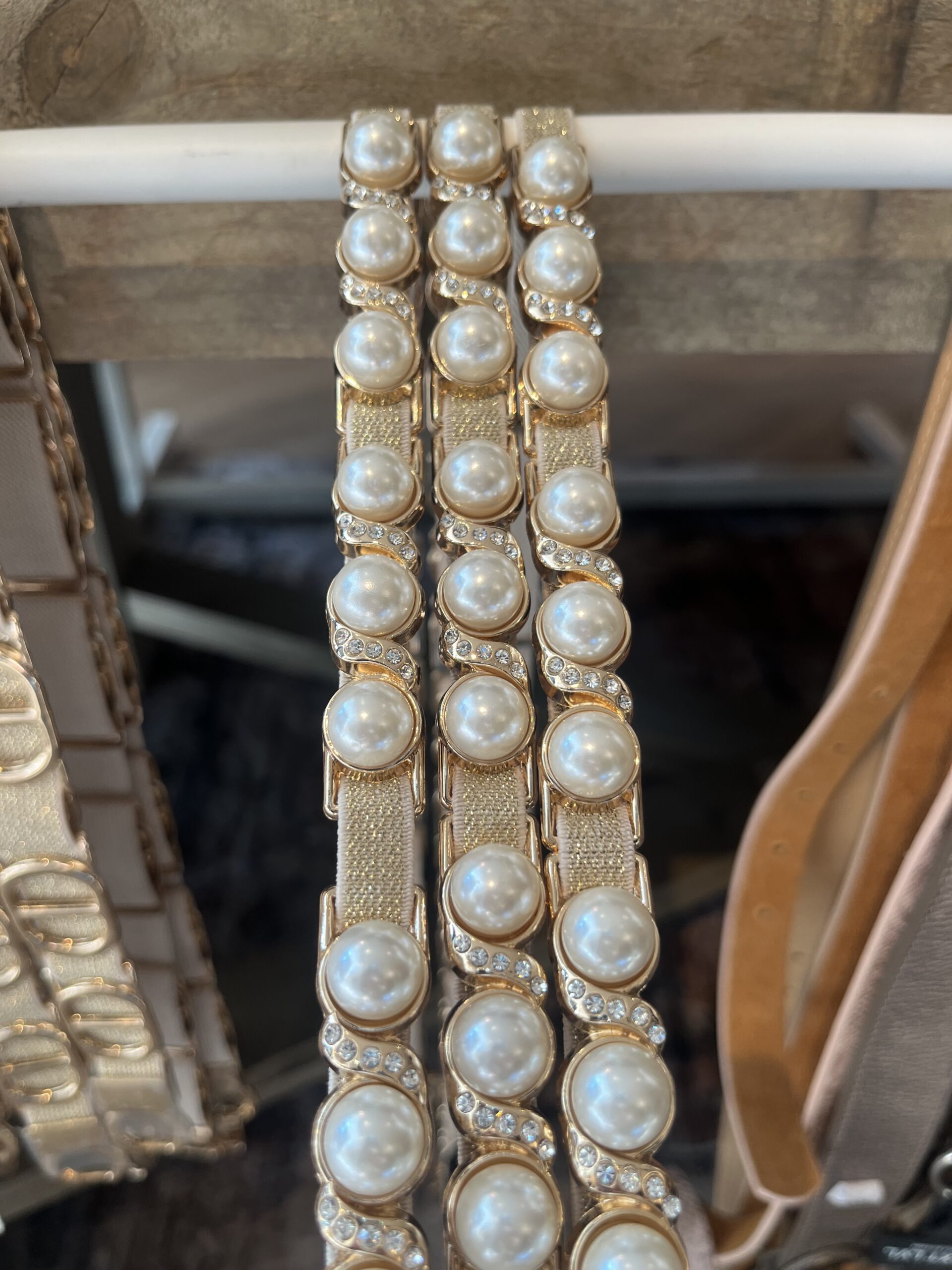 elastische damesriem goud parel