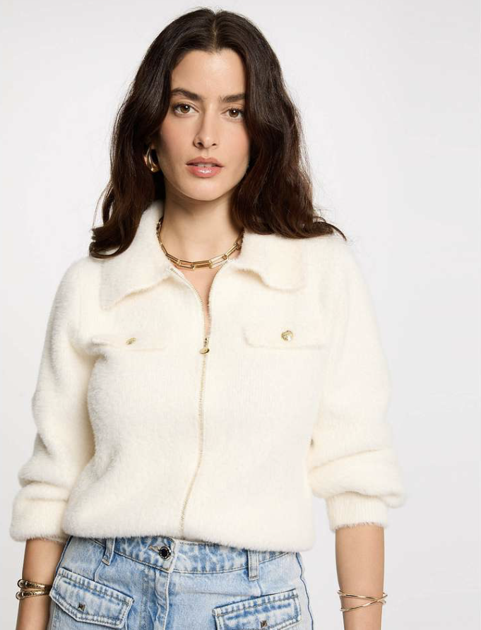 Dit heerlijke zachte vest van Morgan de toi heeft een leuke fluffy uitstraling.